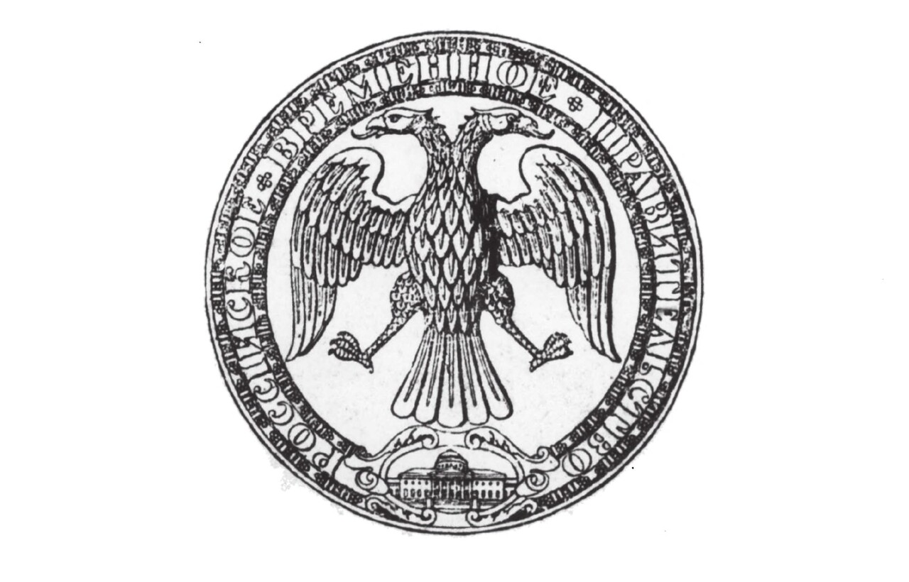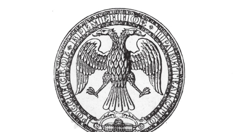 После Февральской революции 1917 года Временное правительство решило оставить на гербе двуглавого орла, но убрать с него все атрибуты царской власти — короны, скипетр, державу, щиток с Георгием Победоносцем. Не прошло и месяца с отречения императора Николая Второго, а председатель Временного правительства князь Георгий Львов утвердил эскиз печати кабинета министров. Его автором был художник Иван Билибин, известный иллюстрациями к русским сказкам.