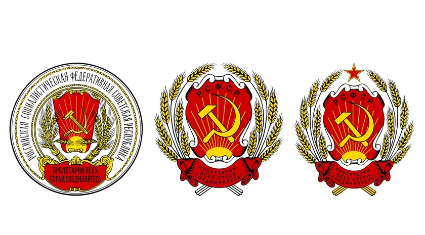 Одновременно в России сохранялся герб РСФСР, разработанный скульптором Николаем Андреевым и утвержденный 20 июля 1920 года. На нем изображались золотые серп и молот на красном фоне в лучах солнца. Основную часть герба обрамляли колосья и надписи «РСФСР» и «Пролетарии всех стран, соединяйтесь». С небольшими изменениями этот герб просуществовал до 1993 года.