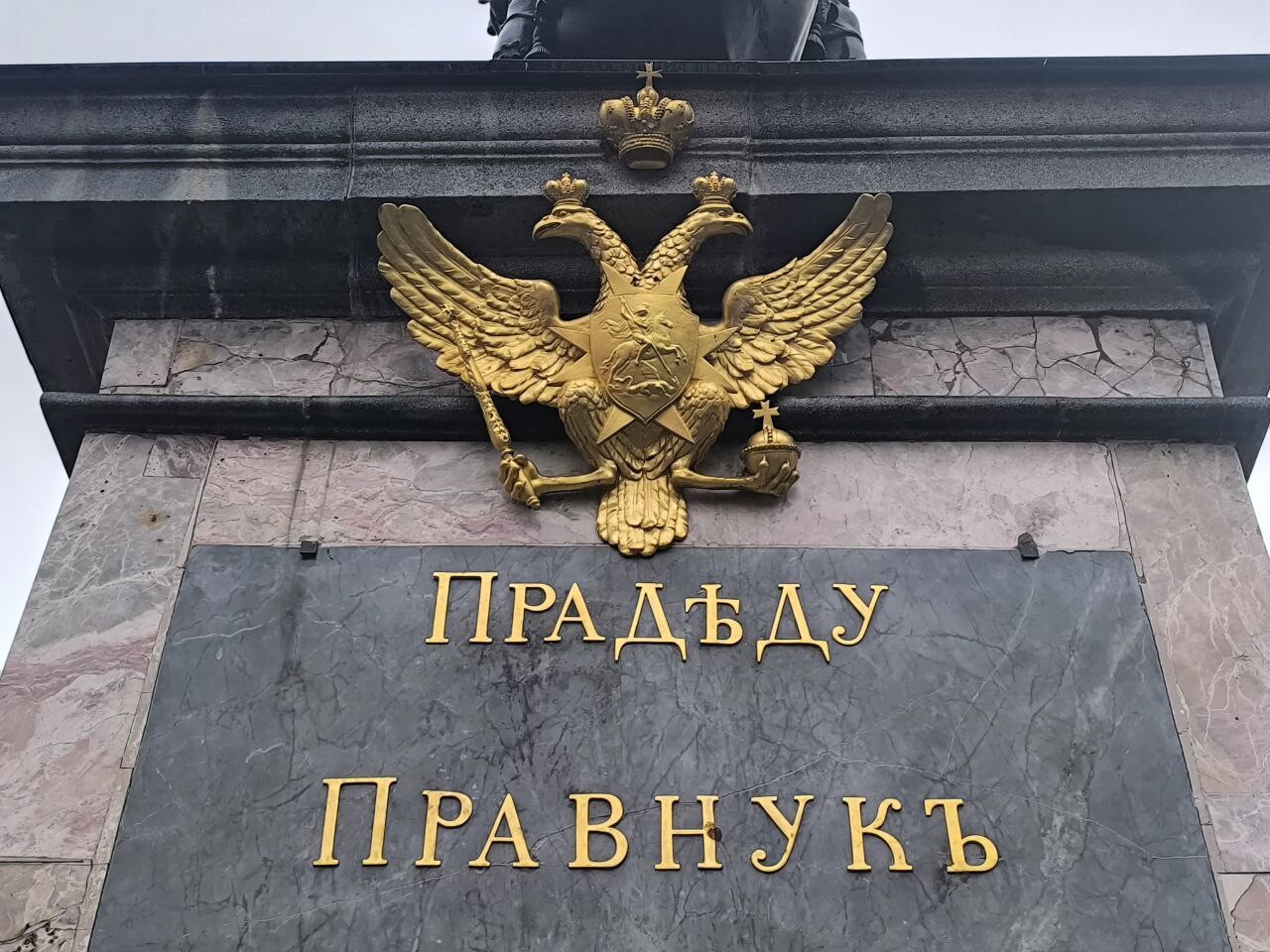 Герб Павла Первого на памятнике Петру Первому в Санкт-Петербурге.