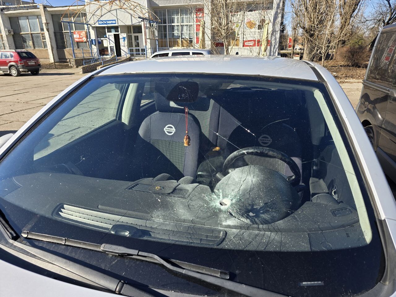 В результате детонации повреждено остекление здания, фасад и припаркованные рядом автомобили, никто не пострадал.