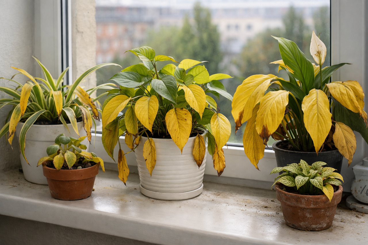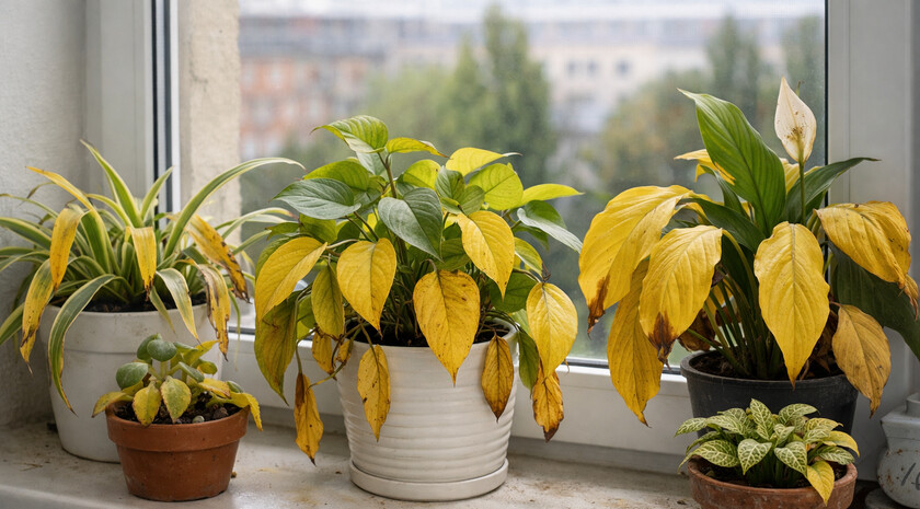 «Если грунт долго остаётся мокрым — корням не хватает кислорода. Питание усваивается хуже, и листья начинают желтеть равномерно, чаще снизу», — пояснил эксперт, отмечая, что перелив является самой частой причиной пожелтения.