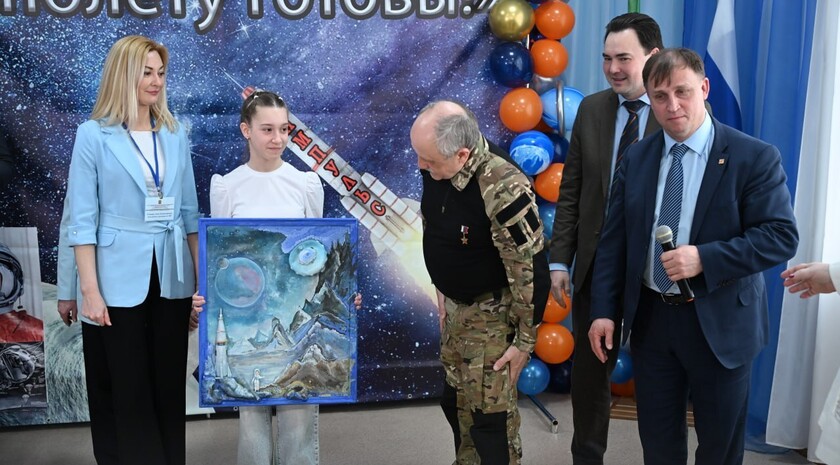 Делегация почетных гостей, в числе которых прибыл летчик-космонавт, Герой России Юрий Усачев, посетила Центр предпрофессионального образования «Импульс» в Бердянске. Воспитанники передали ее участникам работы на конкурс ко Дню космонавтики, сообщает корреспондент Запорожского агентства новостей.