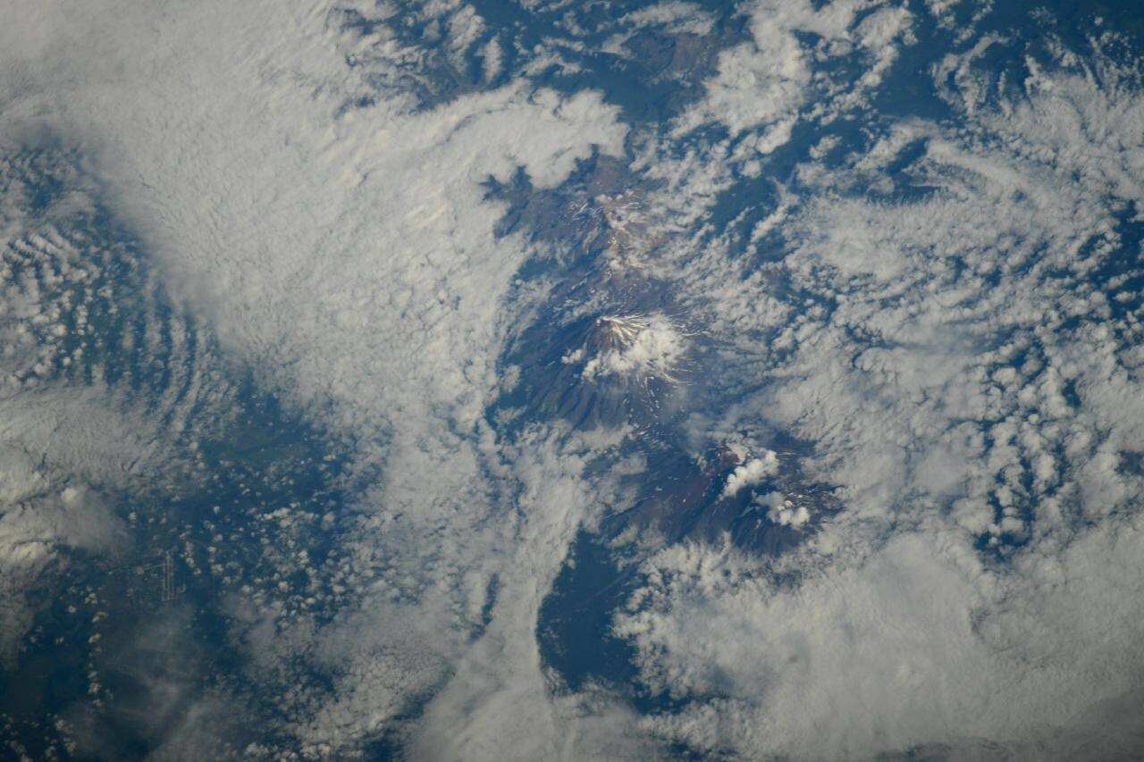 «Когда станция пролетает над Тихим океаном, Камчатка предстает во всей своей суровой красоте. Вид вулканов из иллюминатора МКС — это нечто завораживающее», — написал он.