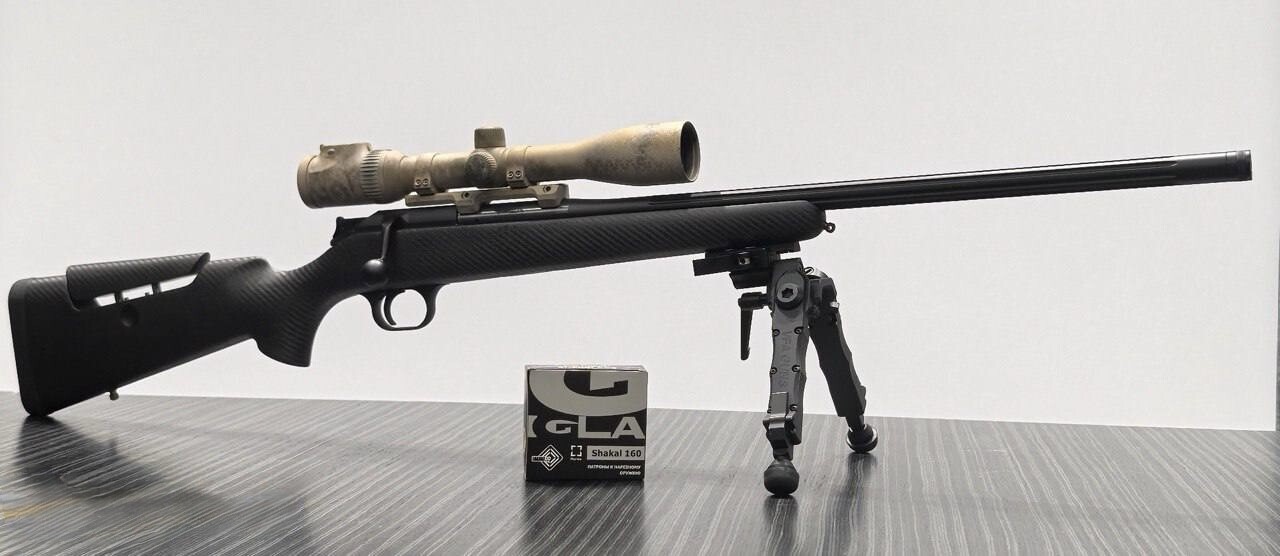 В базовой модели сразу есть дульная резьба. Ложа изготовлена из карбона и имеет регулируемую щеку. Также винтовка имеет регулируемый спусковой крючок