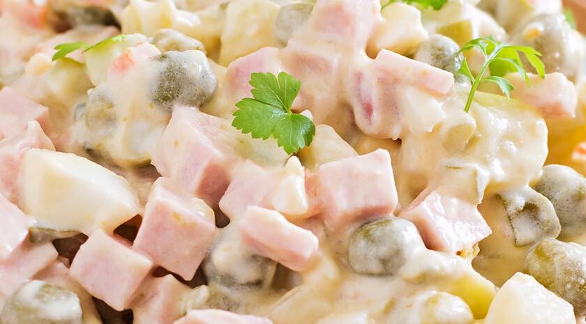 «Все ингредиенты, включая мясо и огурцы, нарезаются мелким кубиком, соразмерным горошинкам консервированного горошка. Это обеспечивает гармоничное сочетание вкусов в каждой ложке», — отметила бренд-шеф ресторанов «Кухня Полли» Ирина Шваб.