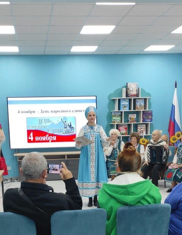 Звучали русские народные песни в исполнении вокального коллектива «Джерело», присутствующим рассказали историю происхождения праздника и о национальных костюмах народов России.