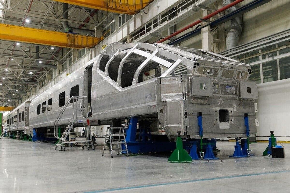 На первом этапе были изготовлены крупные компоненты кузова: боковые и торцевые стены, крыша и рама. Затем компоненты прошли механообработку в фрезерных обрабатывающих центрах. Новым и технически сложным процессом стала установка каркаса кабины машиниста, благодаря которому формируется максимально обтекаемая форма головного вагона. Элементы кузова производятся из экструдированного алюминиевого профиля, который в три раза легче стали, что позволяет снизить нагрузку состава на верхнее строение пути. Это особенно важно при высоких скоростях поезда — до 400км/ч.