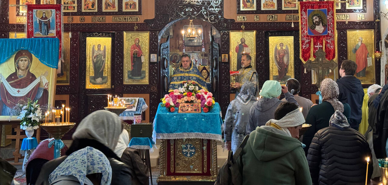 После литургии состоялся молебен Пресвятой Богородице, а прихожан окропили святой водой.