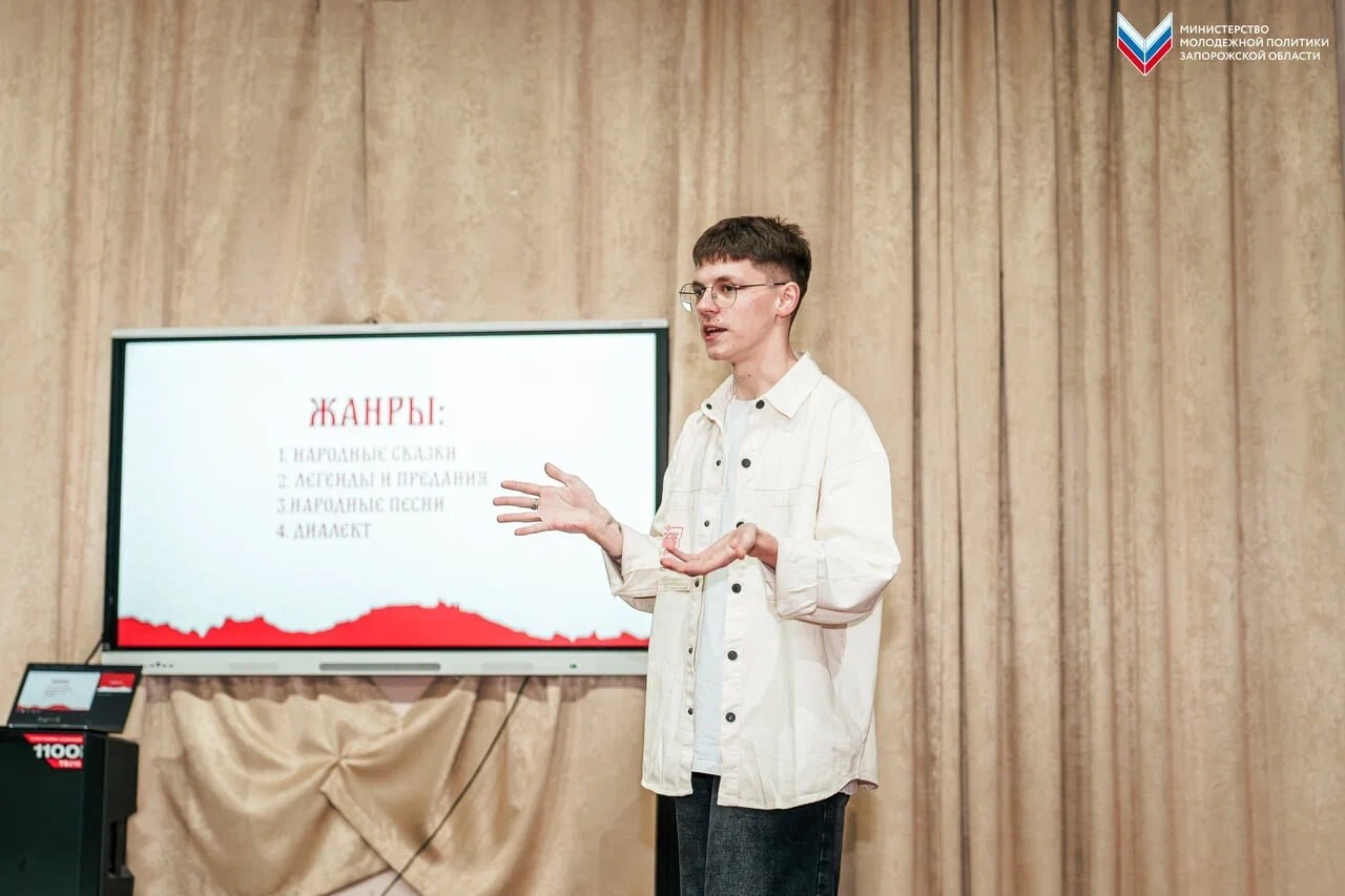 Эксперт в сфере креативных индустрий Петр Бугаев рассказал школьникам об особенностях фольклора Запорожской области и познакомил с диалектами восточных славян. Также участники на примере веснянки разобрали цикл календарно-обрядовых песен.