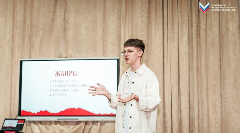 Интерактивную лекцию «Фольклор Запорожской области» провели для учащихся Токмакской школы № 1. Об этом сообщила пресс-служба Министерства по молодежной политике Запорожской области.