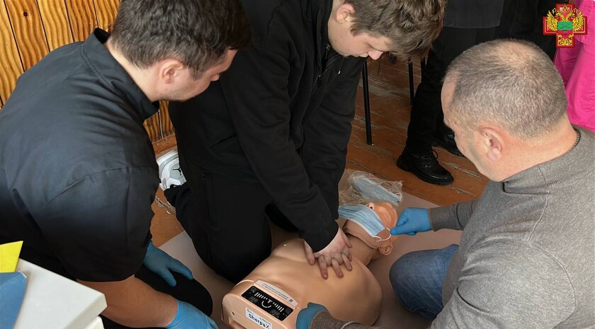 В импровизированном медкабинете ребятам показали, как накладывать бинтовые повязки и жгуты, на манекене продемонстрировали навыки реанимации, а также рассказывали о престиже профессии врача и трудностях, связанных с обучением.