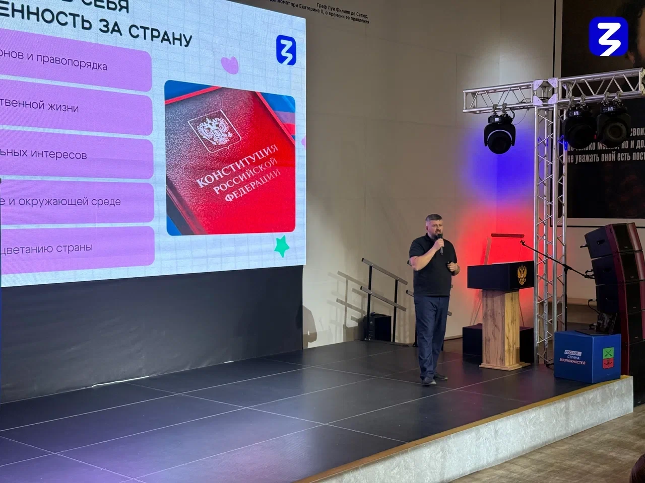 Лектор рассказал, что формирование глубокого понимания своей роли гражданина начинается задолго до совершеннолетия. Он представил практические рекомендации для родителей и педагогов по развитию у подростков чувства причастности к истории и будущему своей страны, важности активной жизненной позиции и готовности брать на себя ответственность.