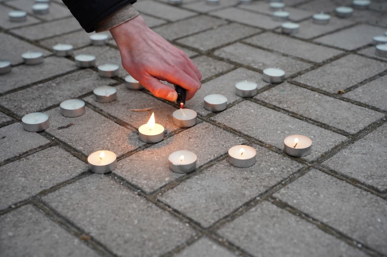 Сотрудники администрации, студенты и волонтеры зажгли свечи в знак памяти о погибших, провели минуту молчания.