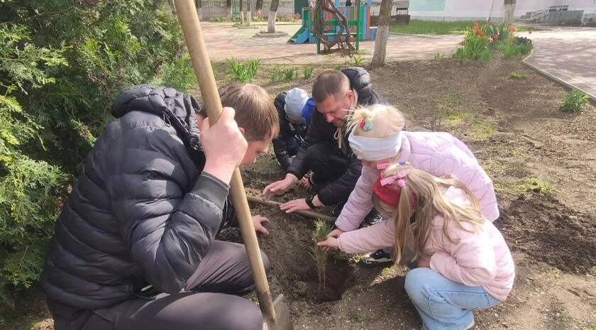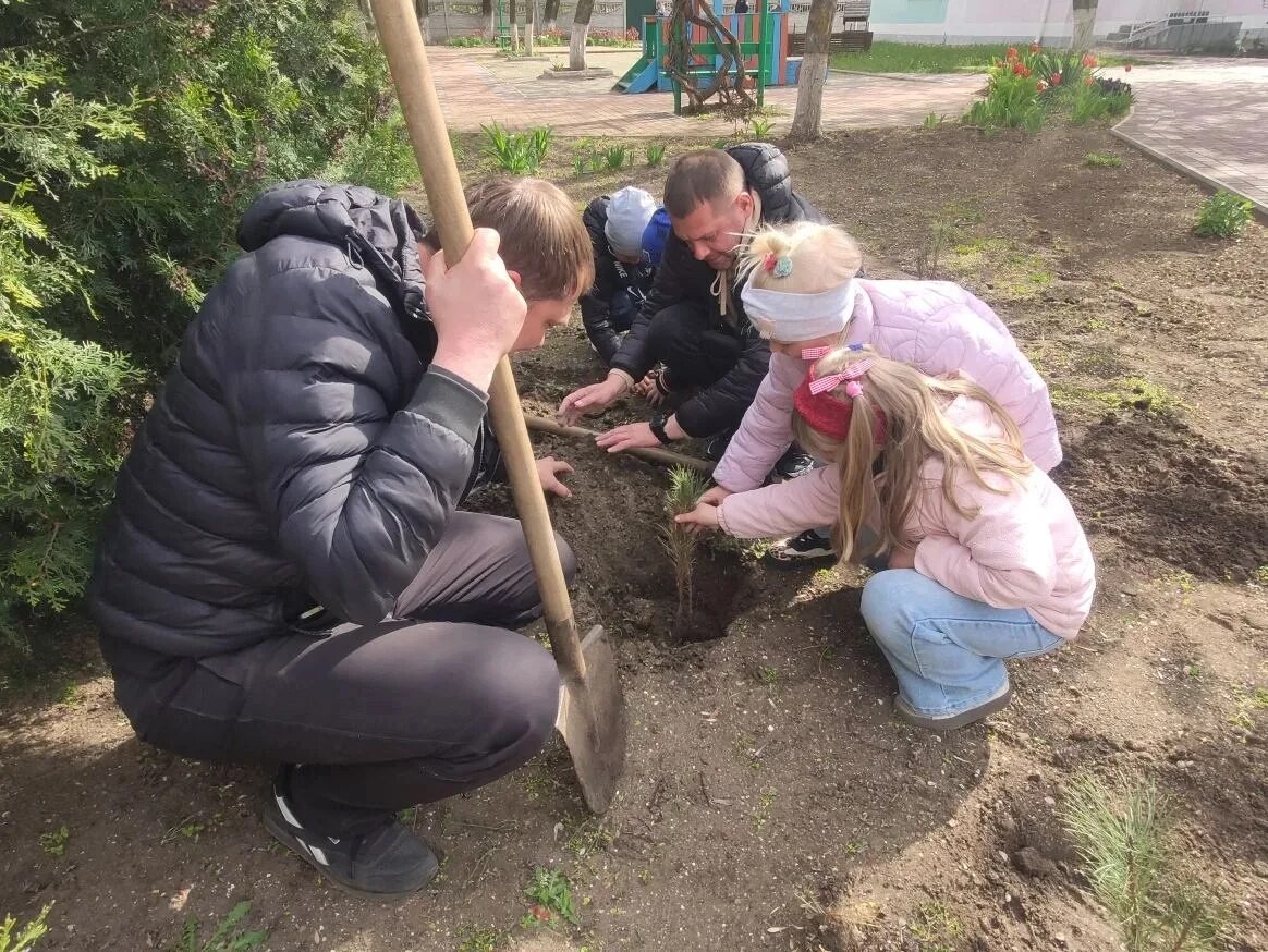 «В акции приняли участие выпускники подготовительной группы „Капитошка“ и их родители. Дети вместе со взрослыми высадили деревья, продолжив добрую традицию участия в благоустройстве родного города», — говорится в сообщении.
