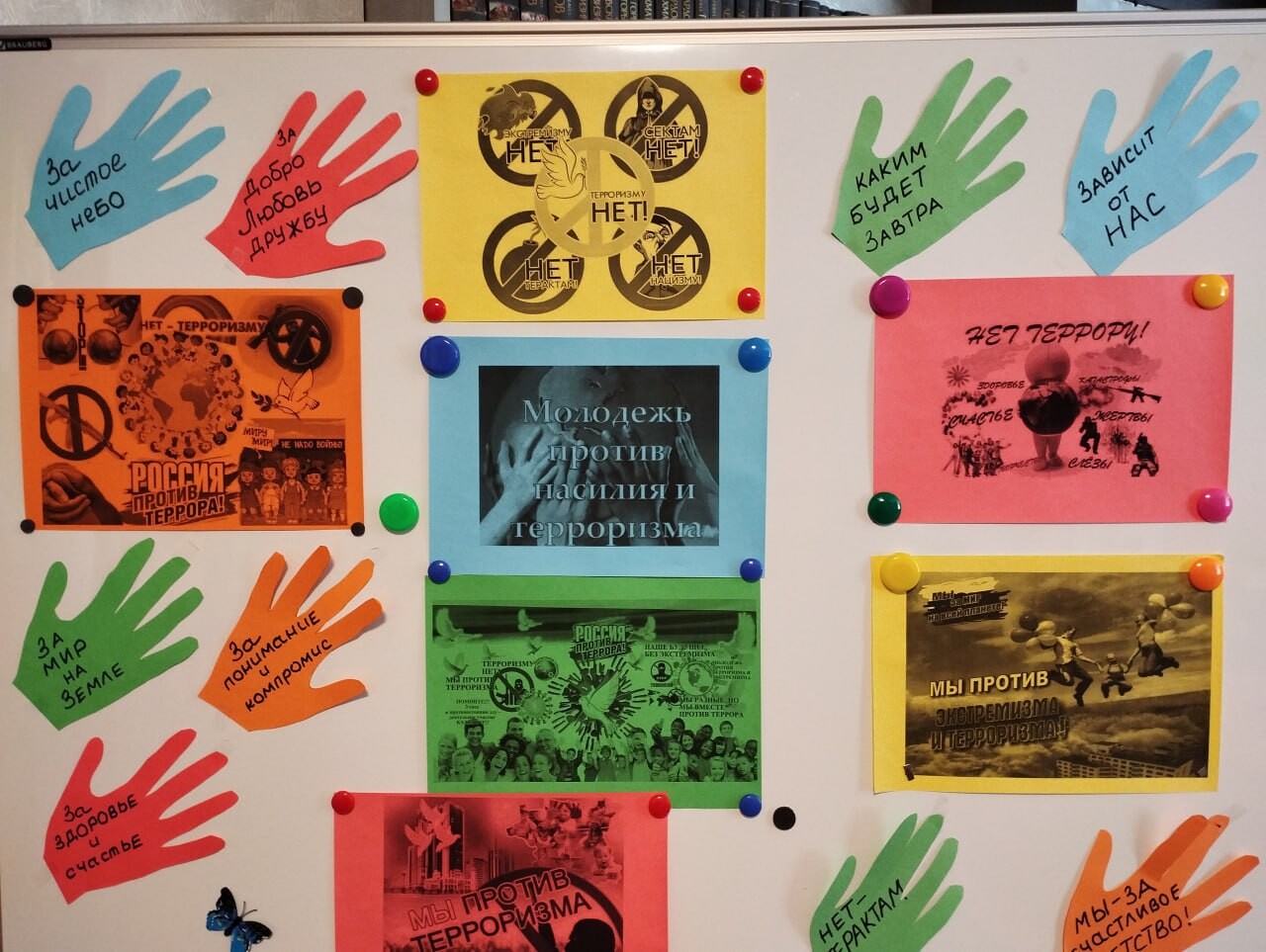 В завершение все участники создали бумажные ладошки с личными пожеланиями мира и безопасности, символизирующие единство и коллективную силу общества в противостоянии угрозам.
