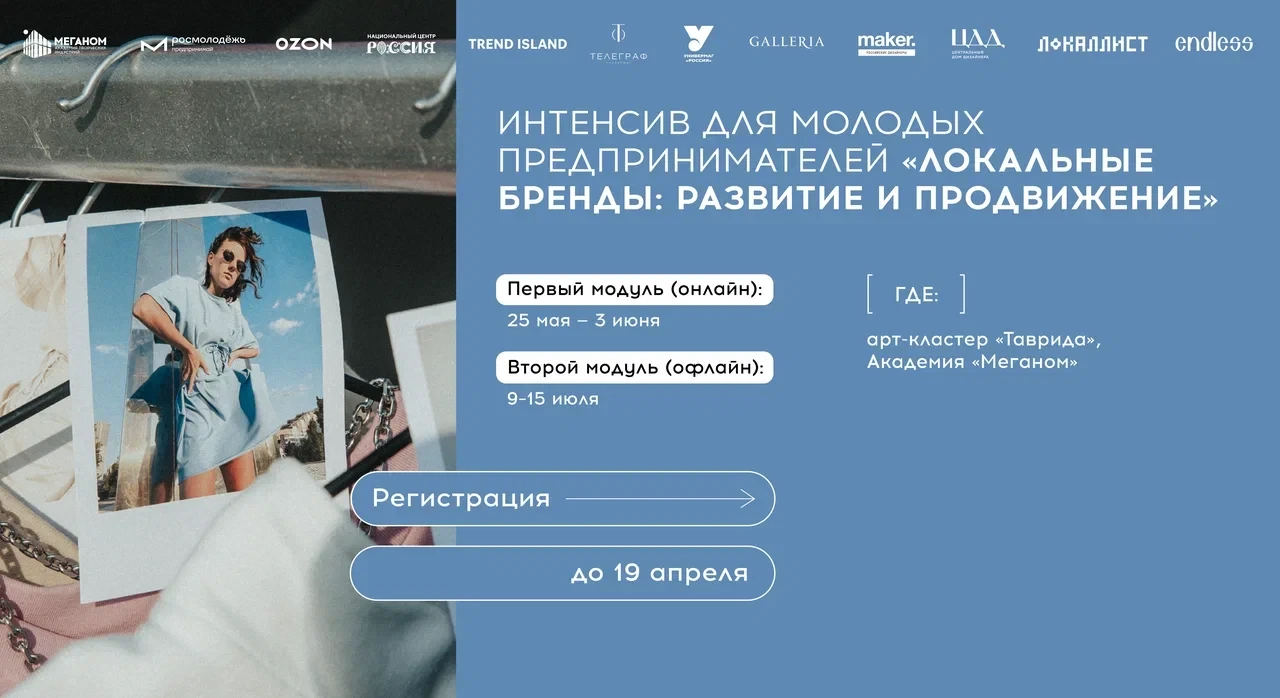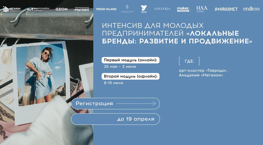 Программа реализуется арт-кластером «Таврида» совместно с Росмолодежь.Предпринимай и рассчитана на основателей локальных брендов в возрасте от 18 до 35 лет. Интенсив включает онлайн-модуль с 25 мая по 3 июня и очный этап с 9 по 15 июля, в ходе которых участники проработают стратегию развития, финансовую модель и маркетинговые коммуникации. По итогам отбора 100 лучших проектов продолжат обучение в Академии «Меганом», представят свои бренды партнерам и получат возможность продвижения на маркетплейсе Ozon, а десять брендов — гранты по 100 тыс. рублей. Регистрация на участие открыта до 19 апреля.