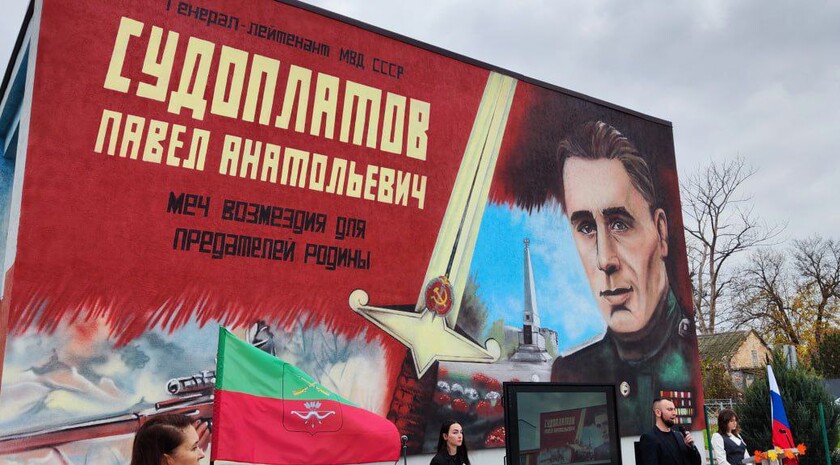 В Мелитополе на здании школы №19 открыли мурал, посвященный советскому разведчику Павлу Судоплатову, чье имя носит учебное заведение. Изображение создали крымские художники по инициативе Фонда содействия безопасности и обороне Запорожской области. В церемонии приняли участие представители власти, юнармейцы, участники СВО и учащиеся школы.