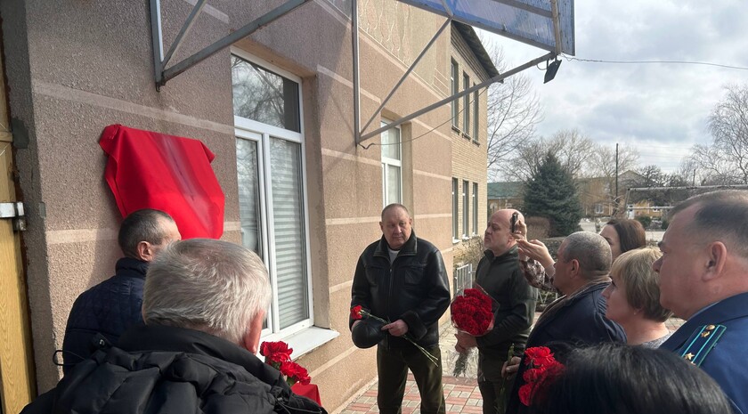 Мемориальную доску открыли на фасаде школьного здания, после чего возложили цветы и почтили память воина минутой молчания.