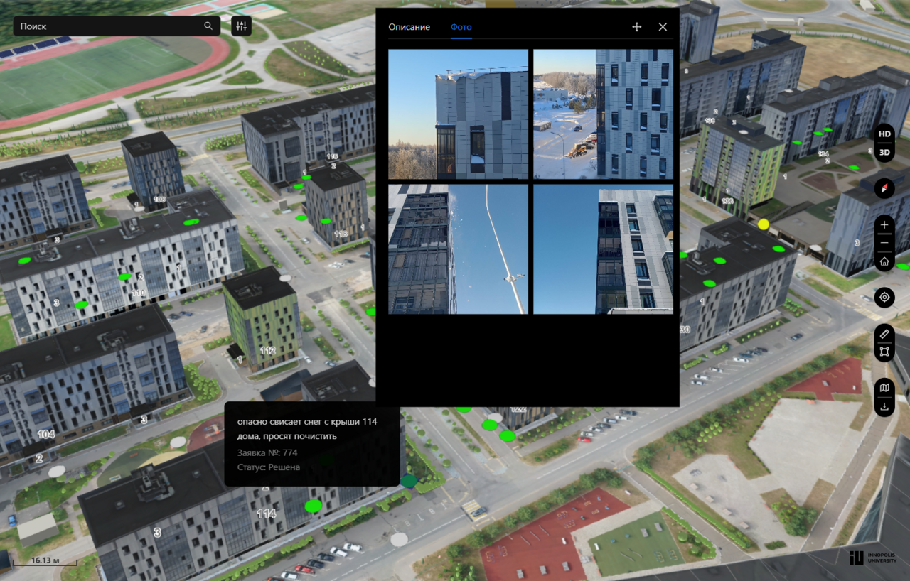 «Такой инструмент помогает администрации городов поддерживать текущую инфраструктуру, оперативно отслеживать и реагировать на городские инциденты, а также планировать тактические и стратегические решения по развитию общественных зон, жилой застройки, транспортных узлов и других систем. Цифровой двойник города становится основой и для цифрового мастер-плана. Его внедрение не требует единовременных крупных вложений и может быть организовано поэтапно: от приоритетных задач к менее срочным», — руководитель проектов Центра геопространственных решений Университета Иннополис Ксения Краснова.