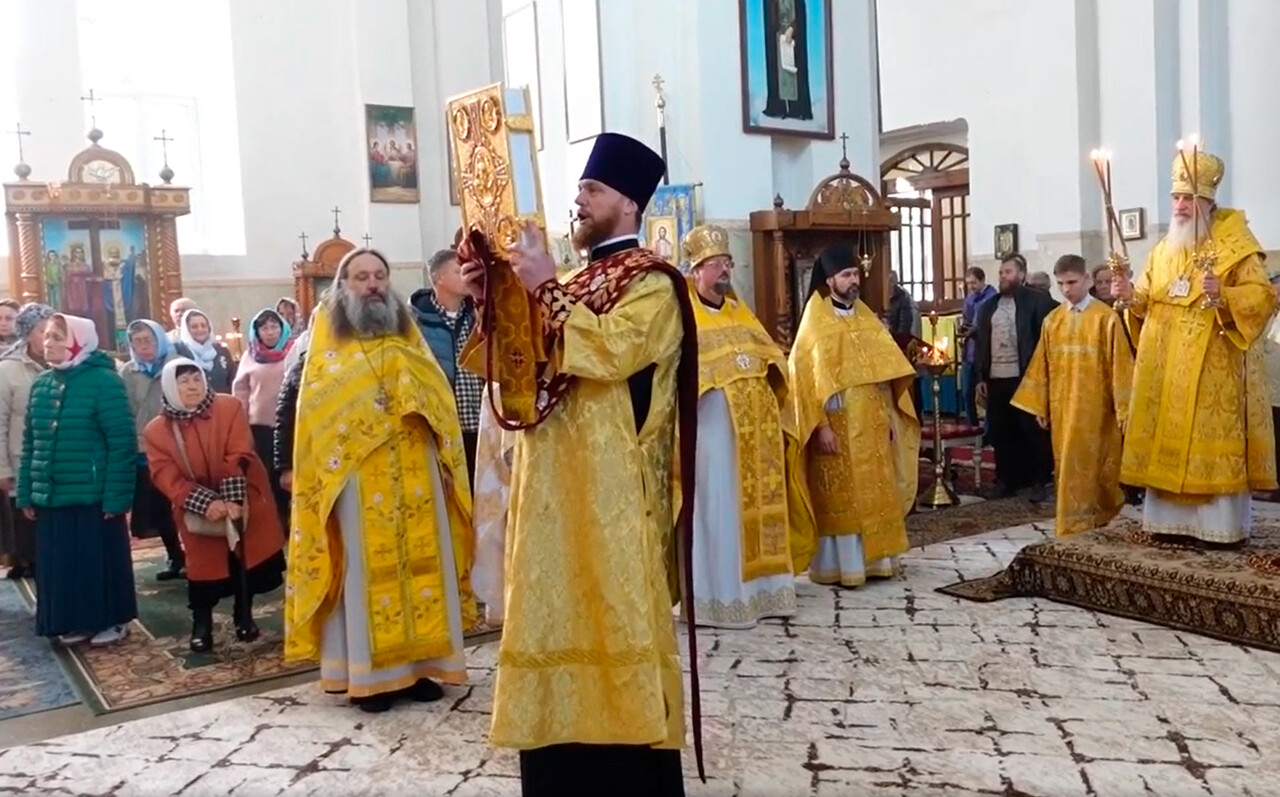 После литургии митрополит Петр и епископ Петр вручили архиерейские грамоты за усердные труды во славу Божию настоятелю Свято-Успенского храма отцу Николаю, настоятелю храма Сергия Радонежского отцу Владимиру, а также труженикам храма и предпринимателям, которые внесли свой вклад в восстановление собора.