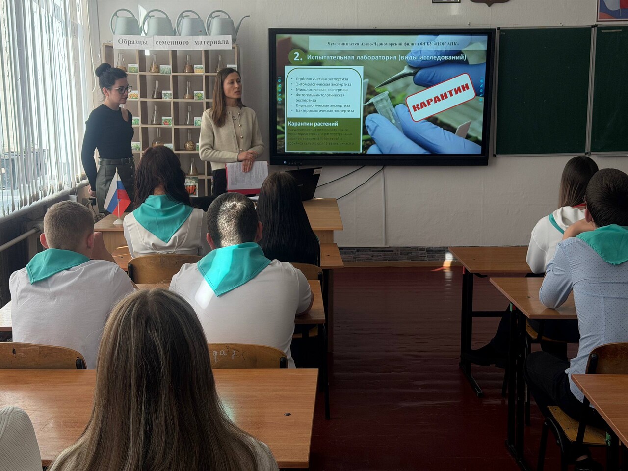 Школьникам рассказали о карантинных сорняках и вредителях, которые встречаются в региона. Также присутствующих ознакомили с тем, как проводится контроль качества и безопасности сельхозпродукции.