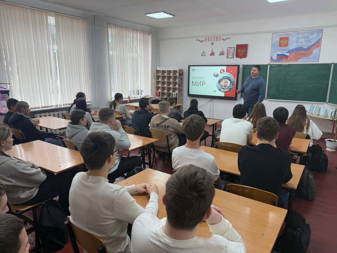 Доктор педагогических наук, профессор Мелитопольского государственного университета Сергей Гуров провел лекцию «108 минут, которые изменили мир» о космонавте Юрии Гагарине для учеников Вознесенской школы №4. Об этом сообщили в пресс-службе движения «Волонтерская рота боевого братства» Запорожской области.