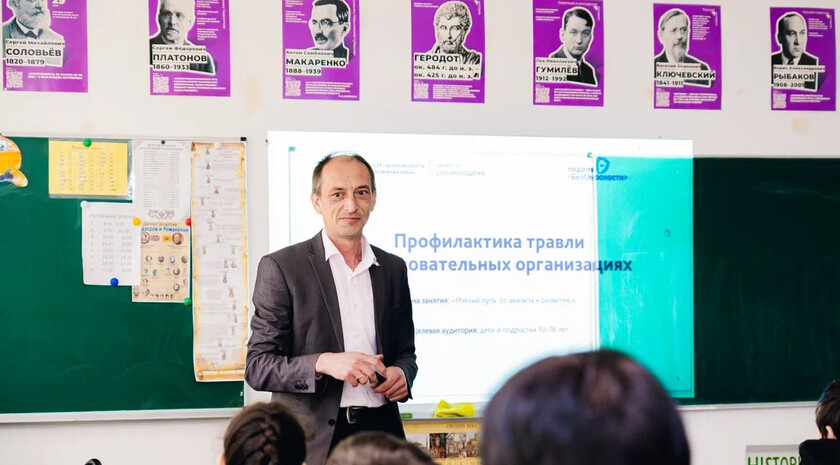 Программа прошла в двух блоках: с педагогами обсудили причины таких деструктивных явлений, как «травля» в образовательных учреждениях, и разработали инструменты для выстраивания уважительной коммуникации в коллективе; для ребят прошел интерактивный урок с обсуждением затронутых тем», — отметили в движении.