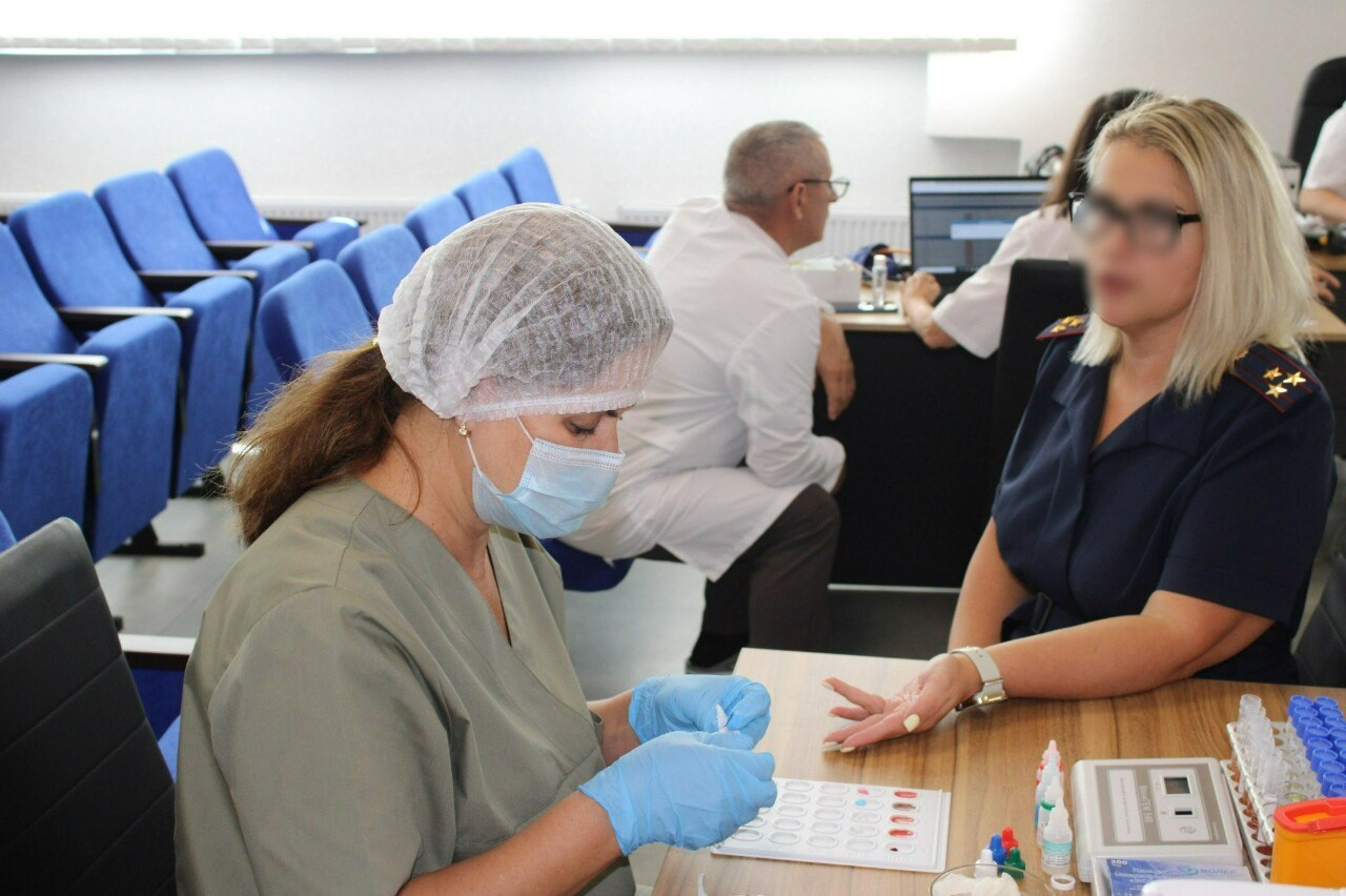 Перед сдачей крови все желающие прошли обязательный медицинский осмотр, включающий экспресс-тестирование на группу крови и резус-фактор, а также измерение давления и температуры.