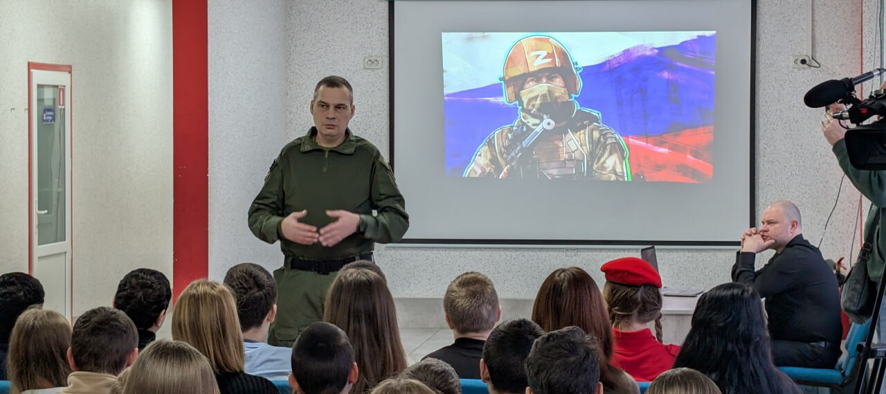 Встреча прошла в формате дискуссии на тему «Мир без ненависти: Диалог поколений». Ветеран отвечал на вопросы школьников о мотивации добровольцев, технике, работающей на передовой, возвращении бойцов к мирной жизни.