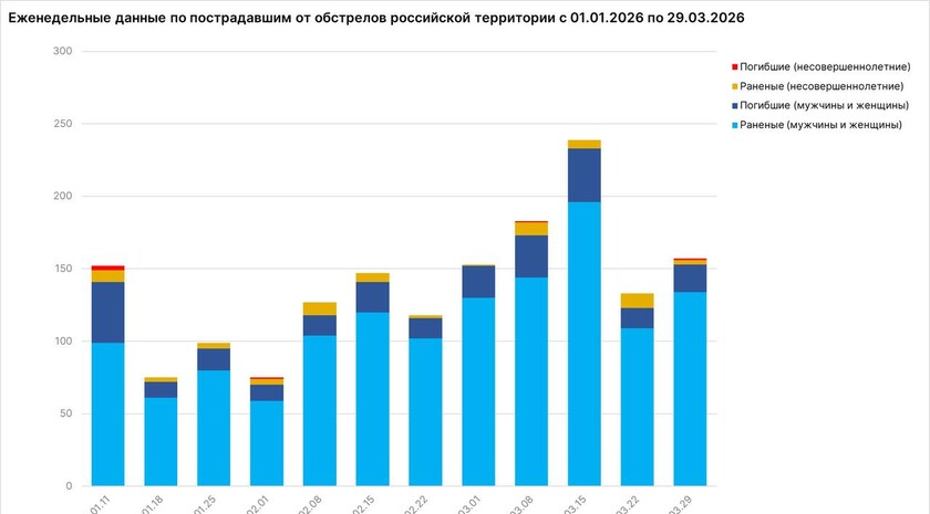 По данным аппарата посла по особым поручениям МИД РФ, за минувшую неделю в России от обстрелов украинских нацистов пострадали 157 мирных жителей: ранены 137 человек, в том числе 3 несовершеннолетних, погибли 20 человек, в том числе 1 несовершеннолетний.