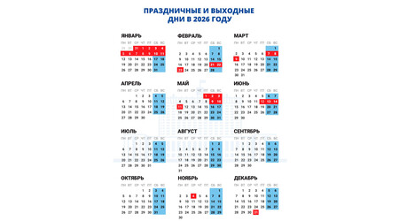 Правительство РФ утвердило праздничные и выходные дни в 2026 году Отдых и досуг Политика 24.09.2025 в 16:33